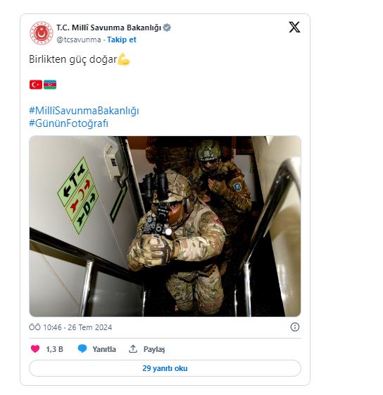 MSB'nin paylaşımında Türkiye ve Azerbaycan kardeşliine vurgu yapıldı: "Birlikten güç doğar"