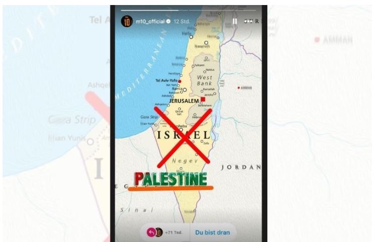 Sosyal medya hesabından bir paylaşım yapan Mesut Özil haritada İsrail yazan kısma çarpı atarken altına "Filistin” yazdı. Mesut Özil'in paylaşımıma takipçilerinden beğeni yağarken, Almanya'da ise rahatsızlığını belirtti.